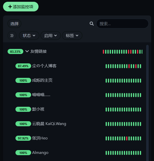 至此,一个属于你自己的kuma监测站就完成了,复制页面地址,将其配置在你需要进行跳转的位置即可~